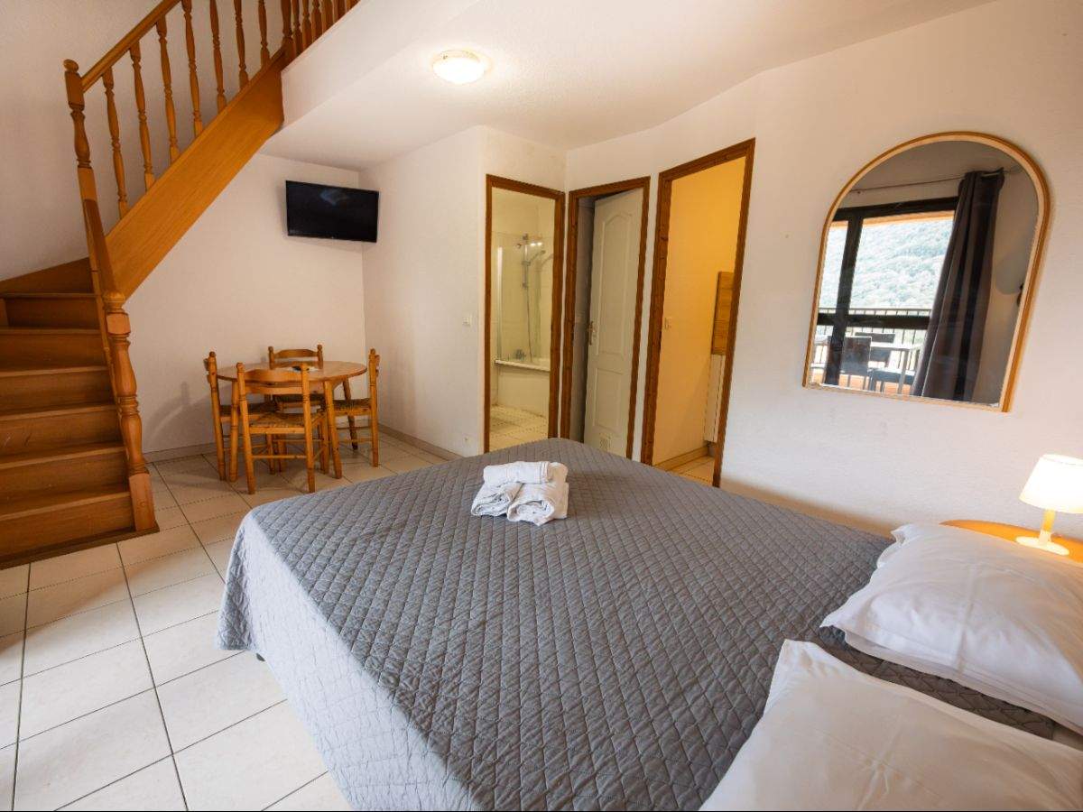Chaque appartement dispose d’une cuisine équipée, d’un lieu de vie avec des couchages, de la climatisation et de la télévision.